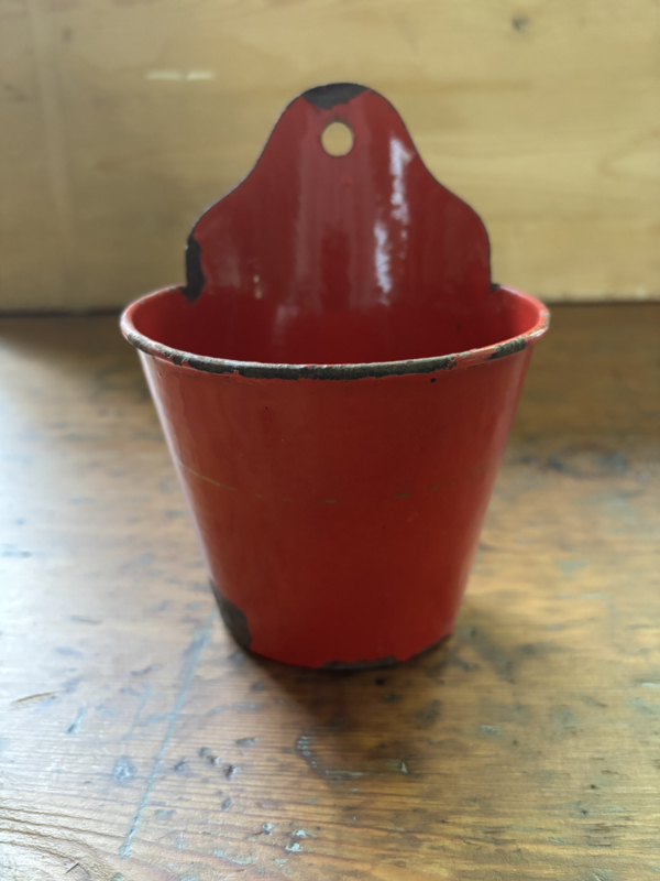 Een oud rood borstel bakje