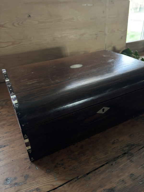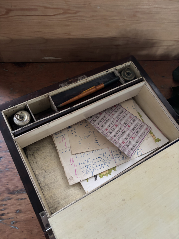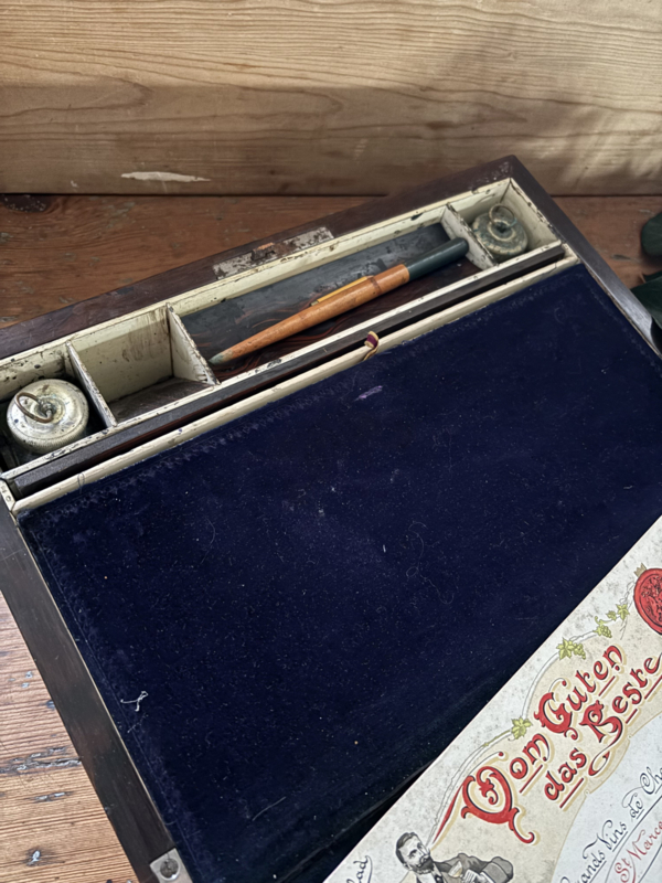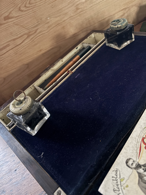 met twee inktpotjes en twee opbergvakjes aan weerskanten