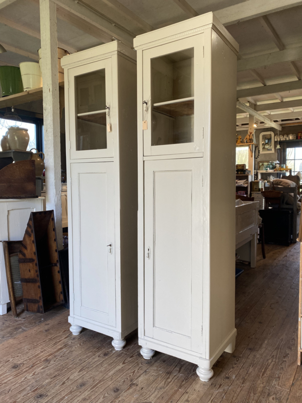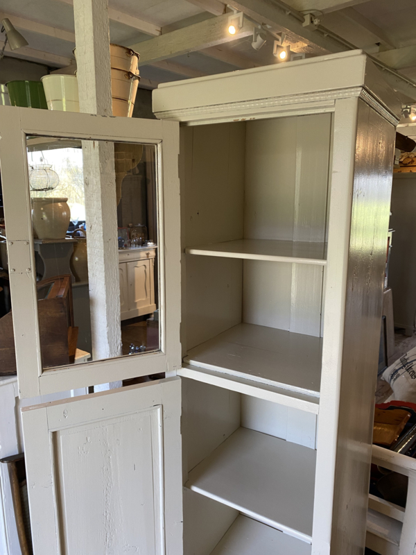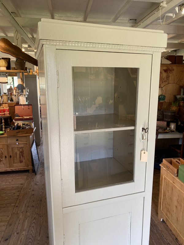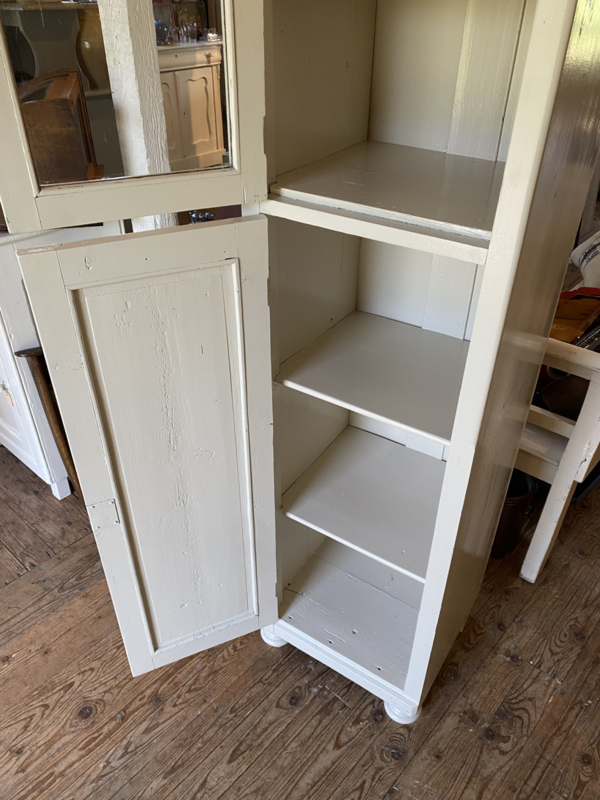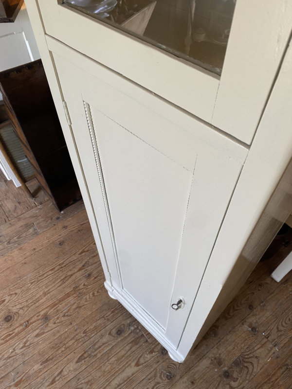 ( Verkocht ) Eendeurs vitrinekast met onderkast en deuren linksom open.