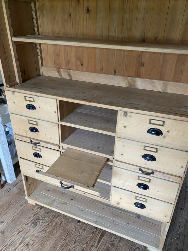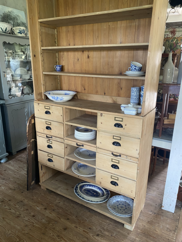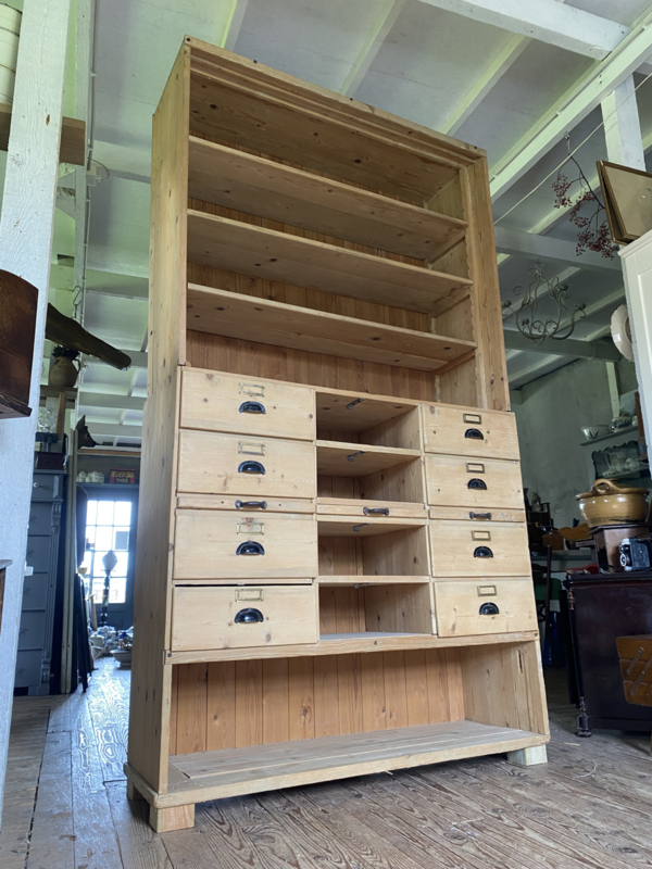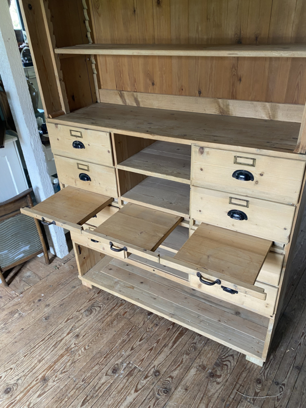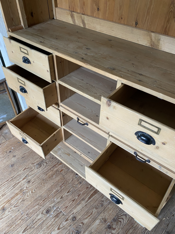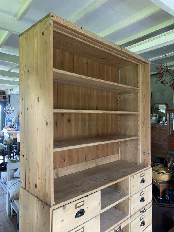 Oud grenen winkelkast. Kast is in 2 delen. ( onder/bovenkant )